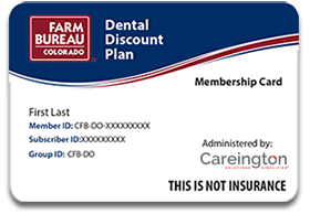 Having a proper healthy lifestyle is important to you and your family. With the Colorado Farm Bureau Dental Discount Plan administered by Careington, you will have access to discounts on exams, braces, cleanings, crowns, dental procedures, dentures and more. Here is what you get with the plan: